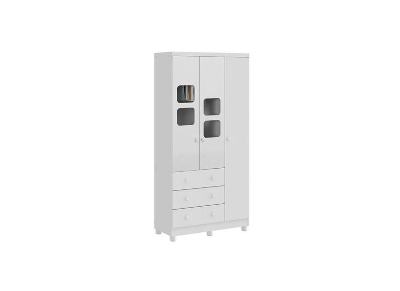 Guarda Roupa Bebe Uli C 3 Portas E 3 Gavetas Branco Peroba