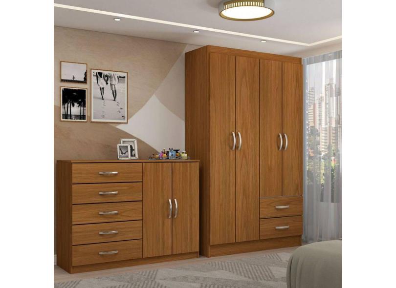 Guarda-Roupa Bella 4 Portas 2 Gavetas com Cômoda 2 Portas 5 Gavetas Cinamomo - Panorama Móveis