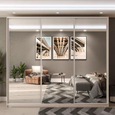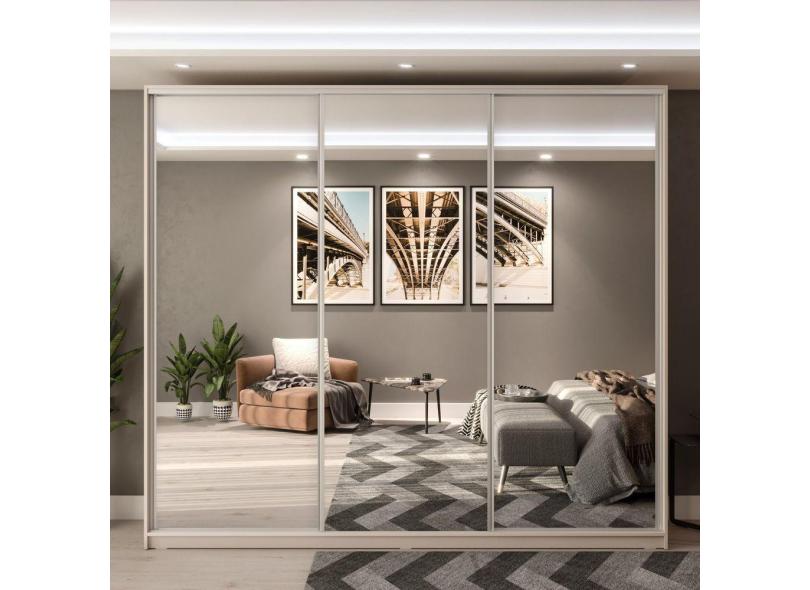 Guarda Roupa Belluno 3 Portas de Correr com Espelho e 3 Gavetas RR Móveis Bege
