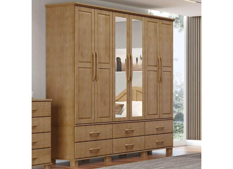 Guarda-Roupa Bipartido 6 Portas 6 Gavetas Ouro Freijó Madeira Pinus - Finestra