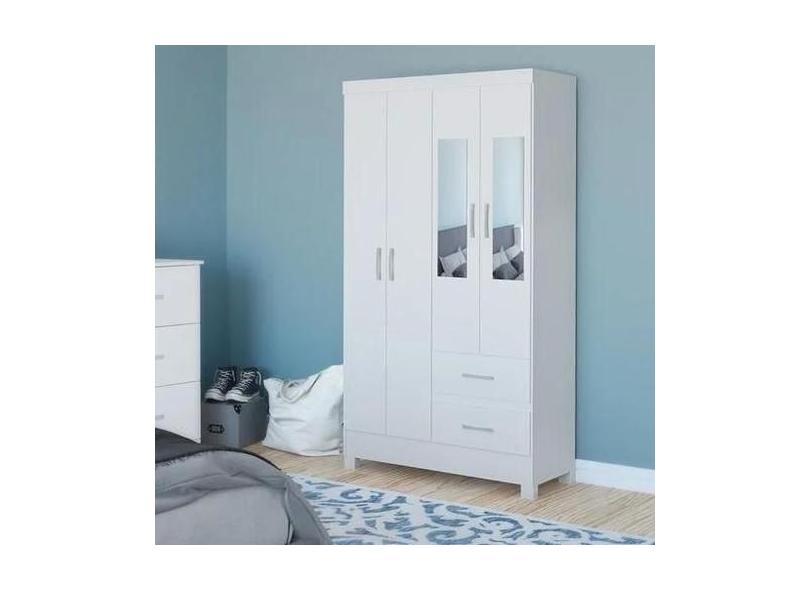 Guarda Roupa Camelia Madeira Mdp 4Pt 2Gv C/Pes Cor:Branco - San Marino