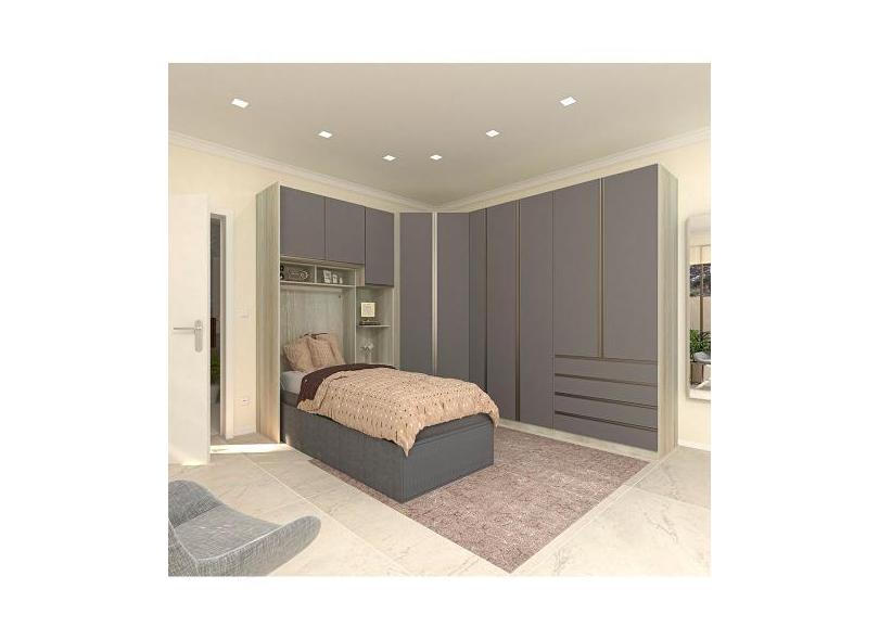 Guarda Roupa Canto Solteiro 10 Portas E 12 Gavetas Legno Crema Com Cin