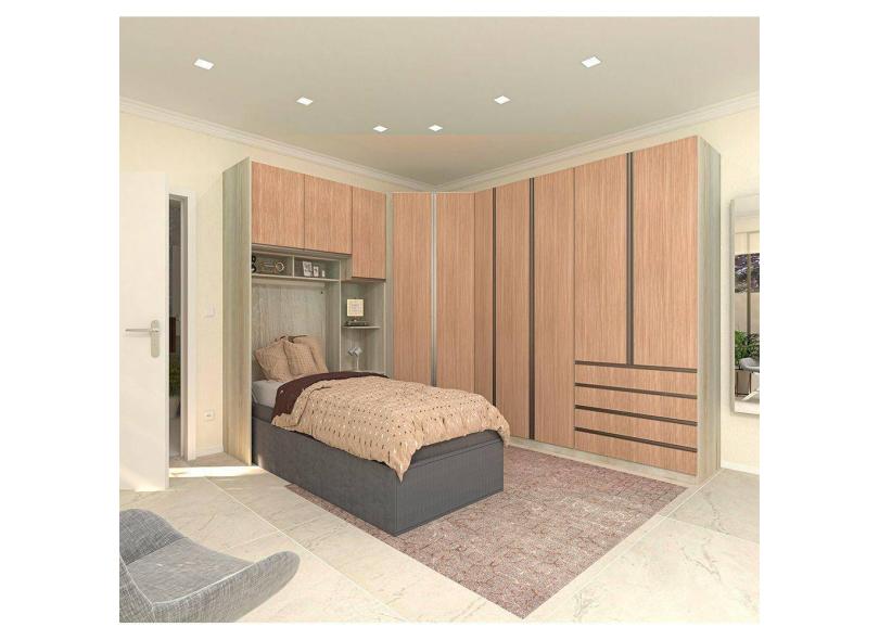 Guarda Roupa Canto Solteiro 10 Portas e 12 Gavetas Legno Crema com Cumaru Prime Luciane Móveis