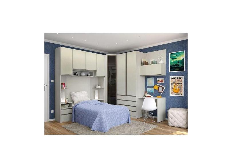 Guarda Roupa Canto Solteiro Vidro C/ Escrivaninha Legno Crem - KIT