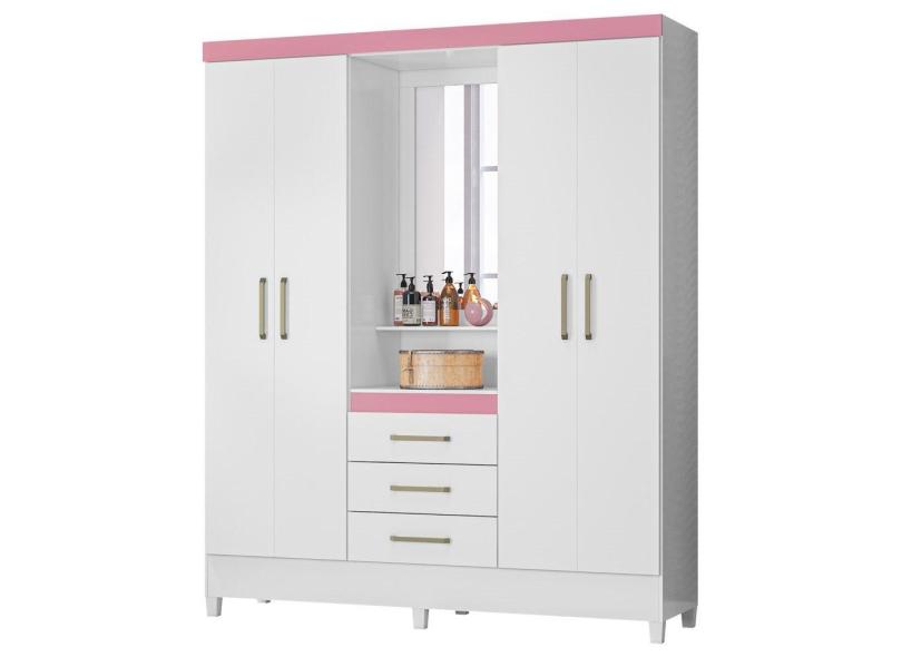 O menor preço encontrado no Brasil para Guarda Roupa Capelinha Flex 4 Portas 3 Gavetas Persia D02 Branco/Rosa/Branco - Mpozenato atualmente é R$ 871,94.