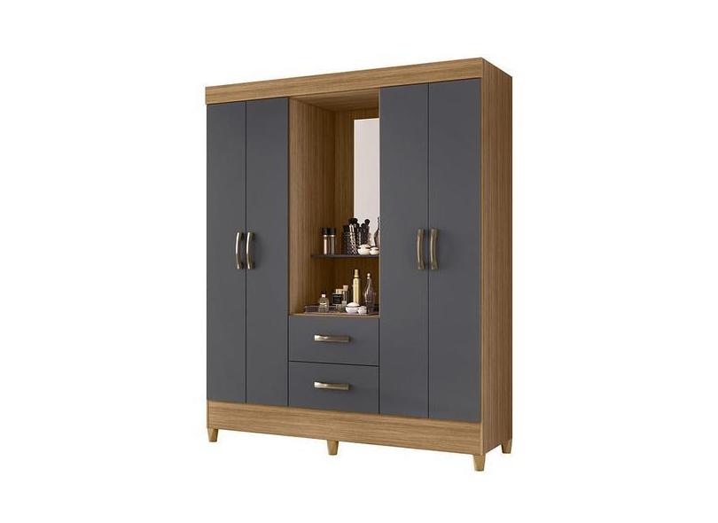 Guarda Roupa Capelinha Mobi 4 Portas Nature/Titanium- Móveis Albatroz