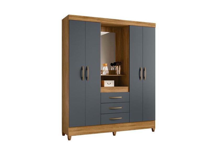 Guarda Roupa Capri 165cm 4 Portas Freijó Cinza Com Espelho Moval