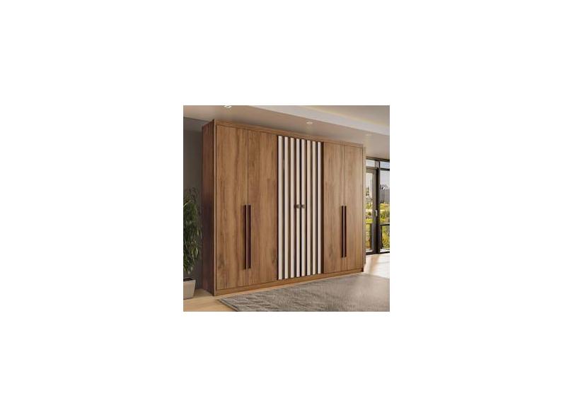 Guarda-Roupa Carraro Vancouver Flex com 6 Portas de Bater, 3 Gavetas e 9 Prateleiras 260cm de Largura - Freijó e Freijó/Off White