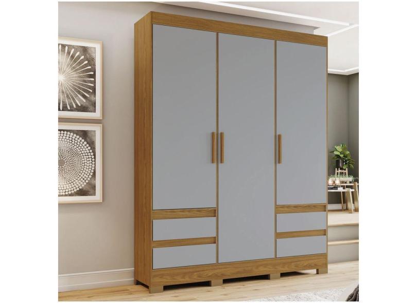 Guarda Roupa Casal 03 Portas 04 Gavetas B55 Briz Nature Com Cinza
