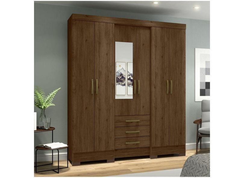 Guarda Roupa Casal 06 Portas 03 Gavetas Mentor Briz Castanho