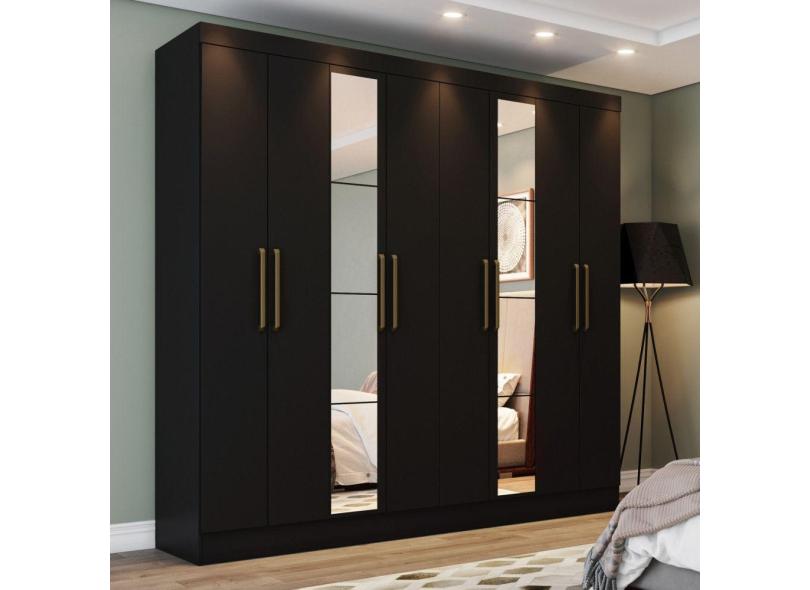 Guarda Roupa Casal 08 Portas 04 Gavetas Com Espelho Nevi Casa 812 Preto Hp