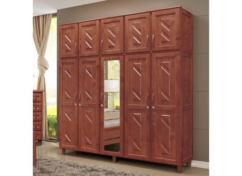 Guarda Roupa Casal 10 Portas 3 Gavetas Mogno