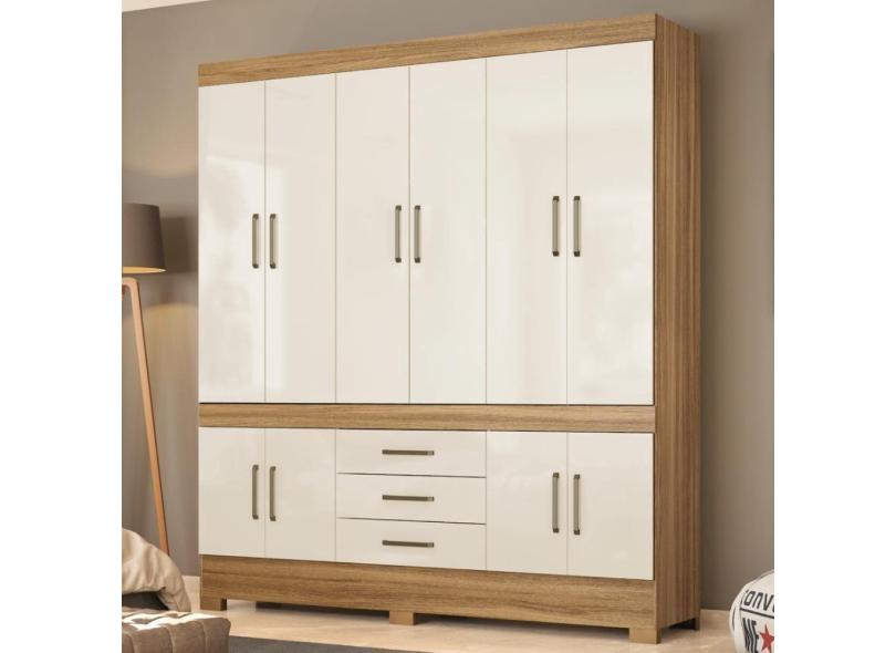Guarda Roupa Casal 10 Portas E 3 Gavetas New Murano Amêndola Touch-off White