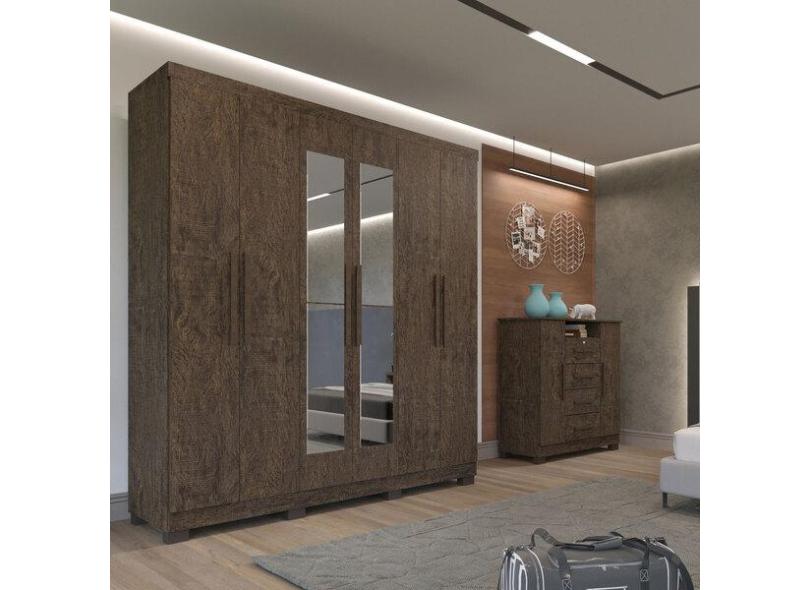 Guarda-roupa Casal 100% Mdf 06 Portas 04 Gavetas Com Espelho