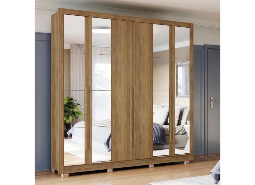 Guarda-Roupa Casal 100% Mdf Kappesberg C/Pés E 16 Espelhos 6 Portas 8 Gavetas Nogueira