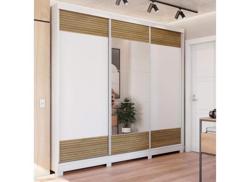 Guarda-Roupa Casal 100% MDF Kappesberg c/Pés e 3 Espelhos 3 Portas de Correr 6 Gavetas Branco/Nogueira