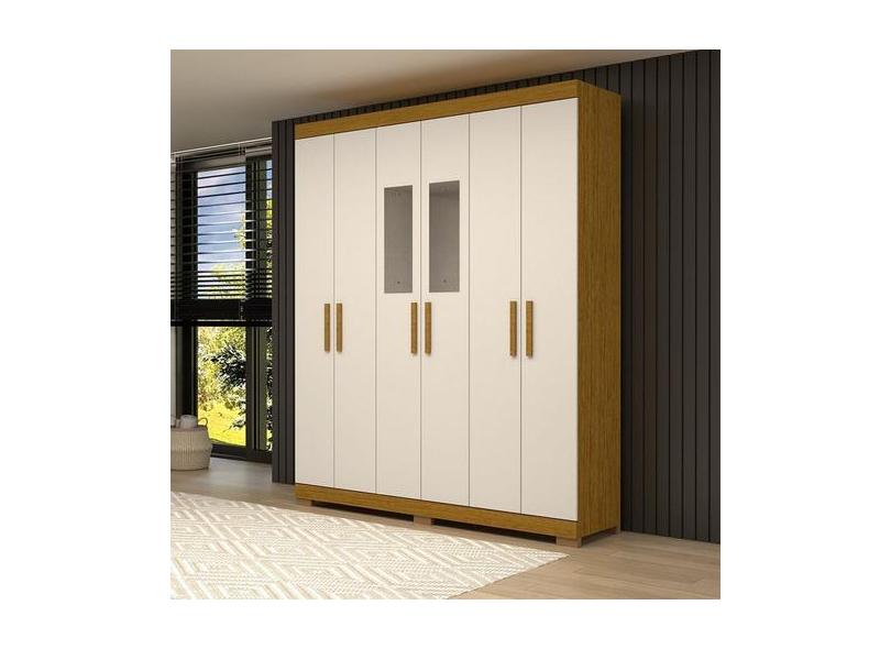 Guarda-Roupa Casal 164,10cm 6 Portas 2 Gavetas Com Espelho 100% Mdf Pa