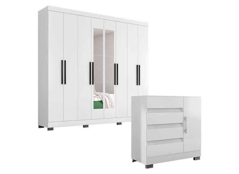 Guarda Roupa Casal 1684 Com Espelho E Cômoda 8000 Branco New Pés Cinza - Araplac