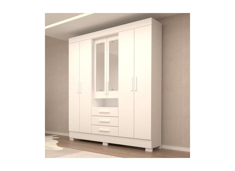 Guarda Roupa Casal 178,80cm 6 Portas 3 Gavetas Capelinha Com Espelho 1