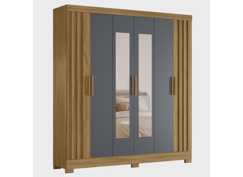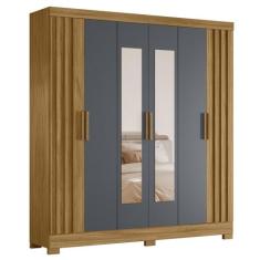 Guarda Roupa Casal 195cm Espelho Ripado Arlon M07 Freijó/Cinza - Mpozenato