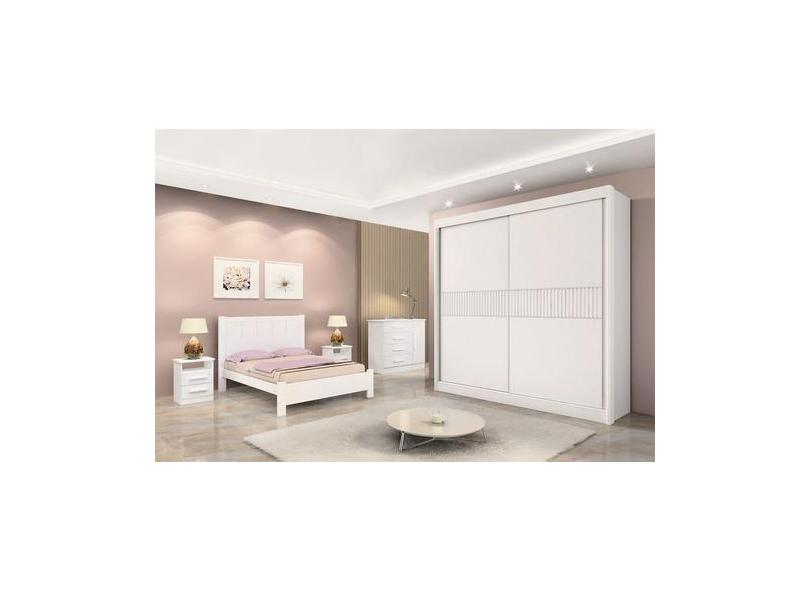 Guarda Roupa Casal 2 Portas 6 Gavetas - Cancun Ripado-Branco - Móveis