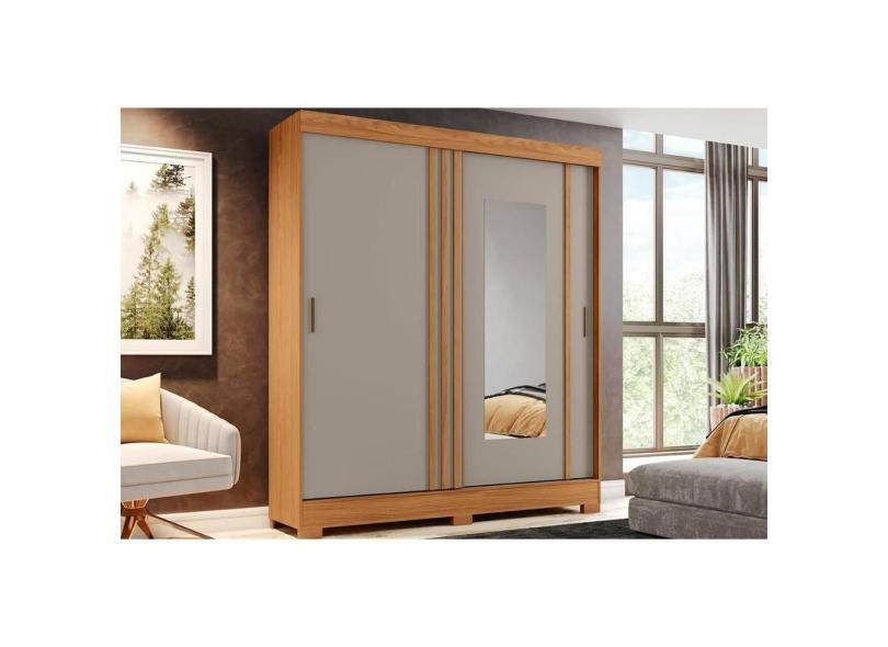 Guarda Roupa Casal 2 Portas de Correr (1 c/ Espelho) e 2 Gavetas Briz B353 Nature/Cinza - Henn