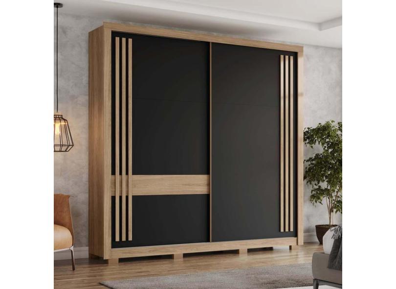 Guarda Roupa Casal 2 Portas De Correr 4 Gavetas Aston Henn Jequitibá Com Jequitibá/preto Hp