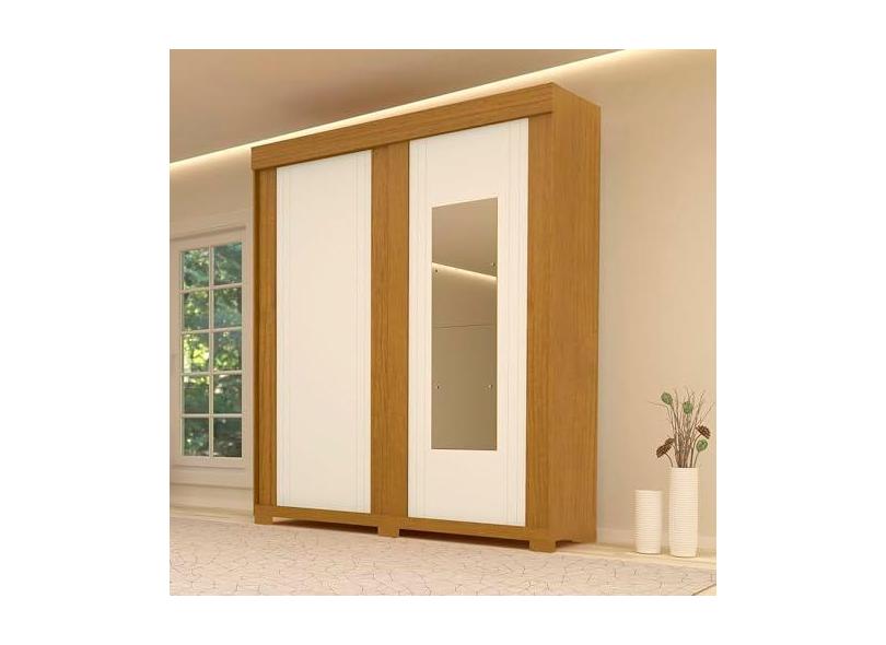 Guarda-roupa Casal 2 Portas de Correr com Espelhos 100% Mdf Yasamen Espresso Móveis Cinamomo/Off White