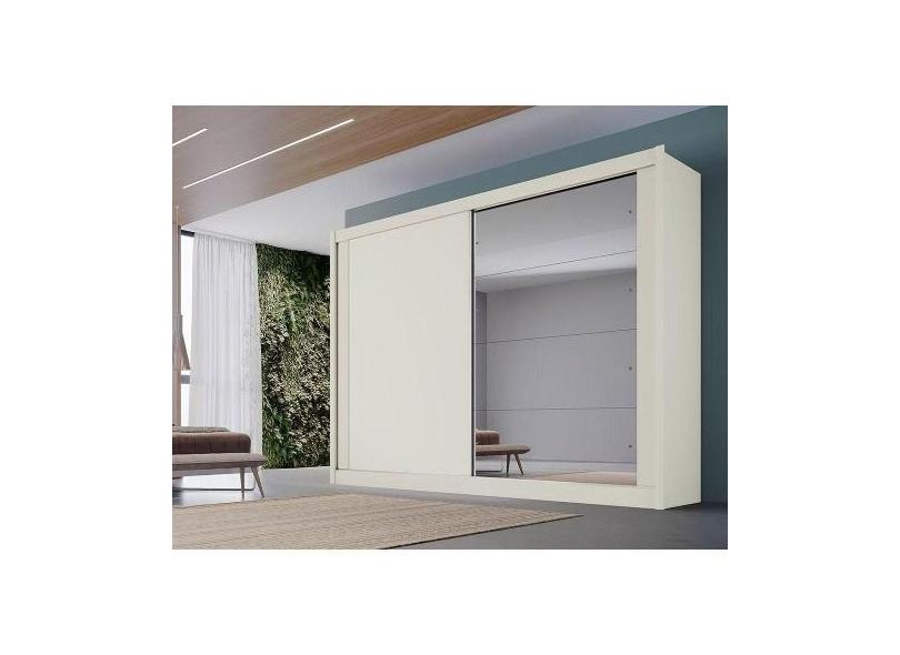 Guarda Roupa Casal 2 Portas de Correr e 4 Gavetas c/ Espelho Creta Off