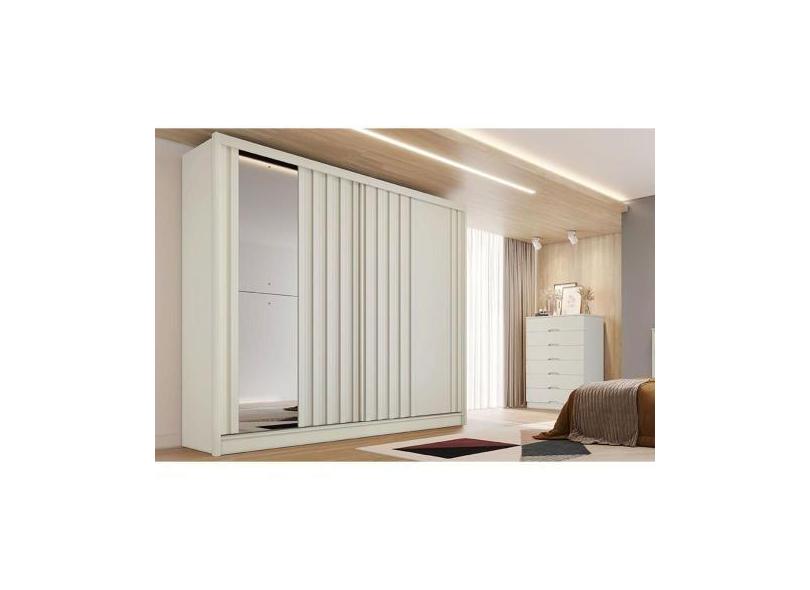 Guarda Roupa Casal 2 Portas de Correr Ripada (1 c/ Espelho) e 4 Gaveta