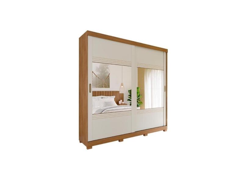 Guarda Roupa Casal 2 Portas E 4 Gavetas Ec/ 2 Espelhos E Pés Blumenau Avelã/Off White - Panan