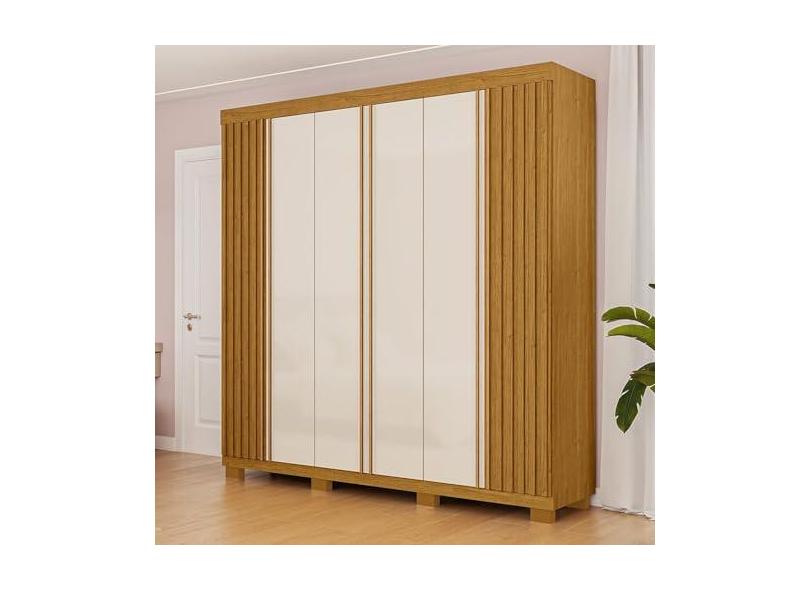 Guarda-roupa Casal 230,10cm 6 Portas Ripado 6 Gavetas 100% Mdf Magnólia Cinamomo/Off White