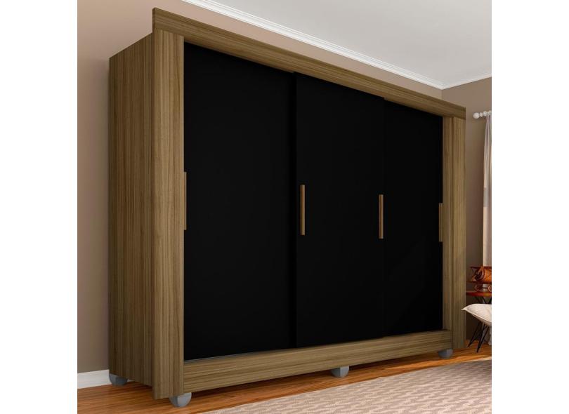 Guarda Roupa Casal 3 Portas 1 Gavetas Alice Boreal/ Preto - Moveis Arapongas