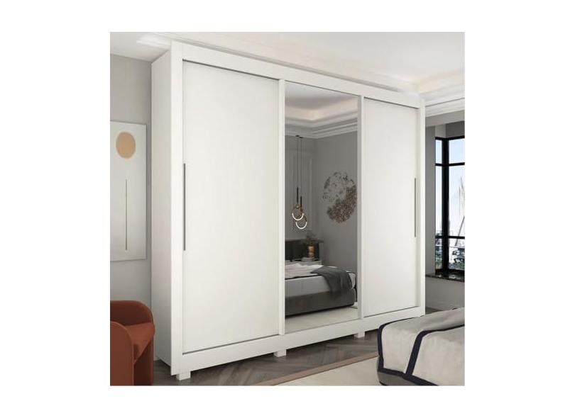 Guarda-roupa Casal 3 Portas 1 Porta Espelhada com Pés Royale Branco