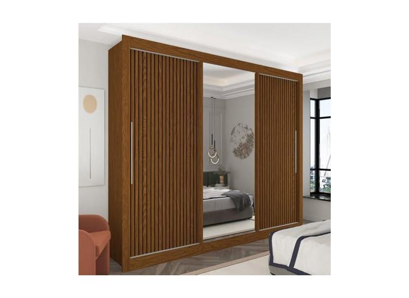 Guarda-roupa Casal 3 Portas 1 Porta Espelhada Royale Castanho/castanho Ripado