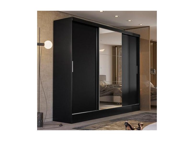 Guarda-roupa Casal 3 Portas 2 Gavetas Plata Preto - Amendola