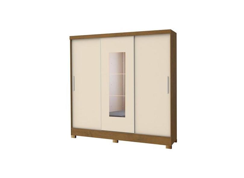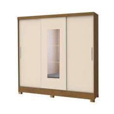 Guarda Roupa Casal 3 Portas 4 Gaveta Noce Perola Com Espelho - San Mar
