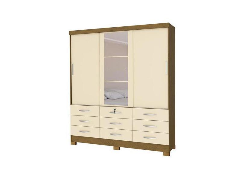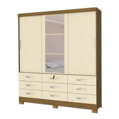 Guarda Roupa Casal 3 Portas 9 Gaveta Noce Perola Com Espelho - San Mar