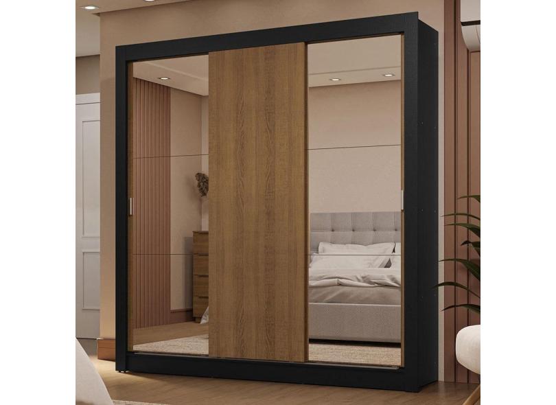 Guarda-roupa Casal 3 Portas Correr 2 Gavetas Preto/Rústico