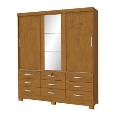 Guarda Roupa Casal 3 Portas Correr 9 Gaveta Noce Com Espelho - San Mar