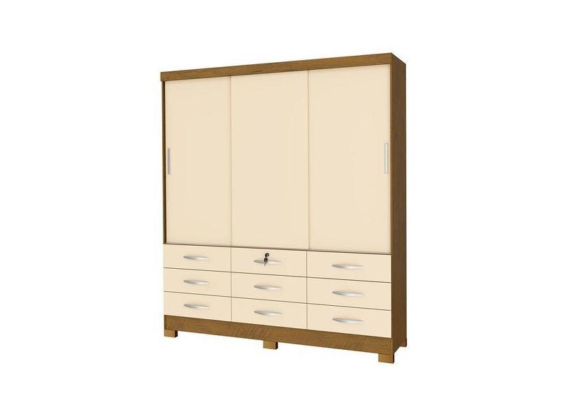 Guarda Roupa Casal 3 Portas Correr 9 Gavetas Noce Perola - San Marino