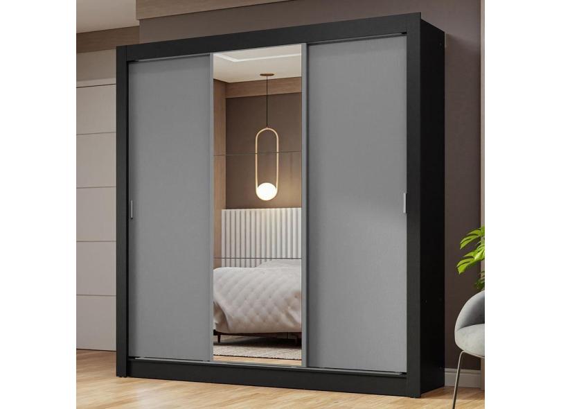 Guarda-roupa Casal 3 Portas Correr Espelho Preto/cinza