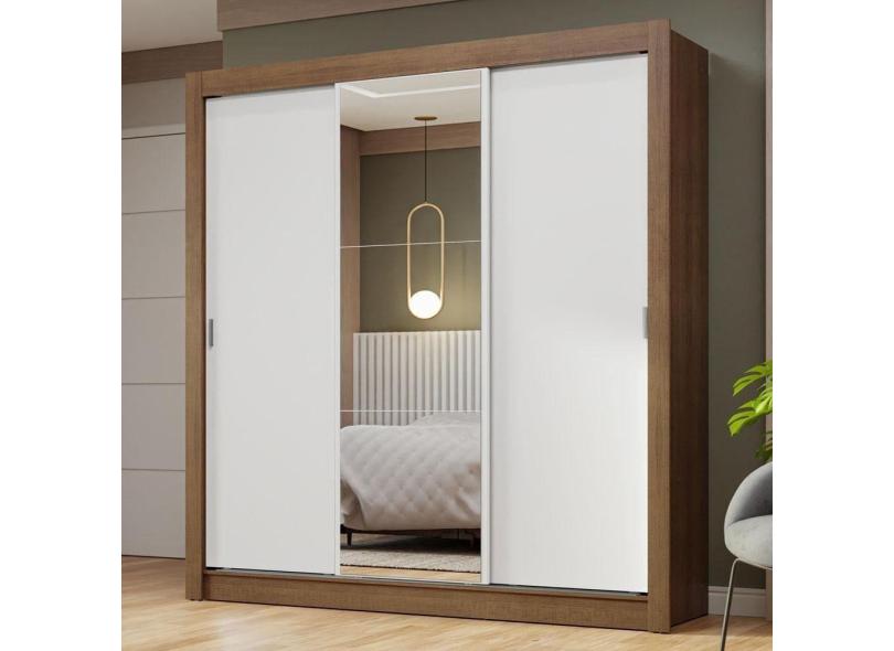 Guarda-roupa Casal 3 Portas Correr Espelho Rustic/branco