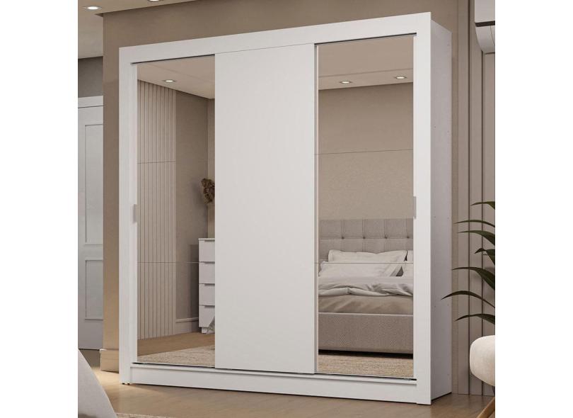 Guarda-roupa Casal 3 Portas Correr Espelhos 2 Gavetas Branco