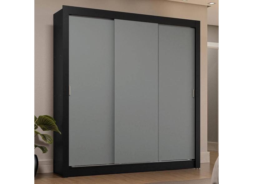 Guarda-Roupa Casal 3 Portas Correr Preto/Cinza Madesa