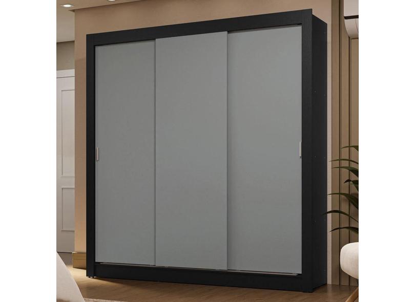 Guarda-roupa Casal 3 Portas Correr Preto/Cinza Sublime