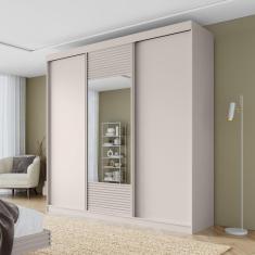 Guarda Roupa Casal 3 Portas de Correr 1 Porta com Espelho Samambaia CabeCasa MadeiraMadeira Off White