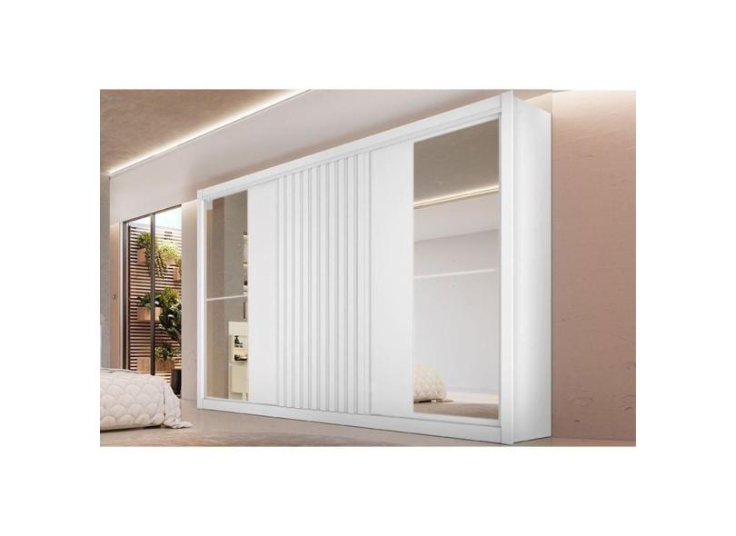Guarda Roupa Casal 3 Portas De Correr 1 Ripada E 6 Gavetas C-2 Espelhos Vitória Branco Acetinado