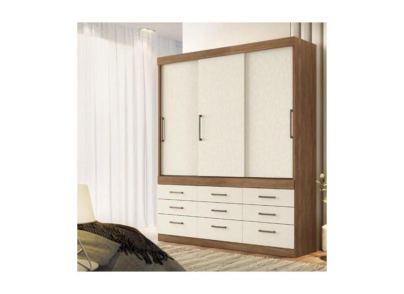 Guarda-roupa Casal 3 Portas de Correr 9 Gavetas Click Jatobá/areia