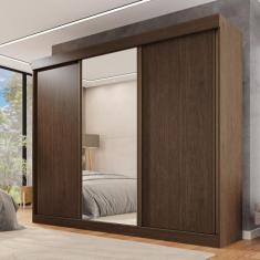 Guarda Roupa Casal 3 Portas De Correr Com Espelho Central 6 Gavetas Ga